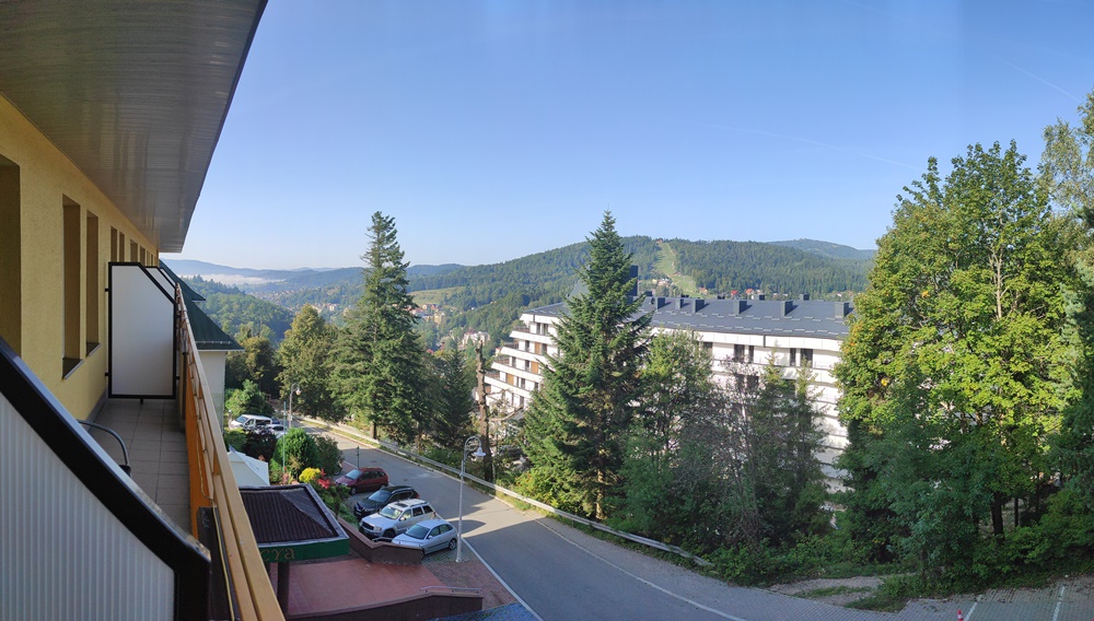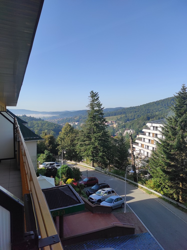 Pierwszy dzień, praktycznie cały spędziliśmy w podróży, gdyż do pokonania mieliśmy ponad 500km. Kierowca naszego autobusu Pan Paweł, sprawnie i bezpiecznie nas przetransportował w obie strony, a na miejscu miał nie lada wyzwanie i wzniesienia do pokonania, gdyż hotel „Galicya Krynica” mieścił się na ulicy Wysokiej – i to dosłownie, co widać na zdjęciach. Autobusem trzeba było podjechać wąskimi uliczkami pod bardzo duże wzniesienia. Za to dziękujemy Panu Pawłowi, że tak bezpiecznie dowiózł nas do celu, woził nas po okolicach Krynicy Zdrój i w całości przywiózł nas do domów.