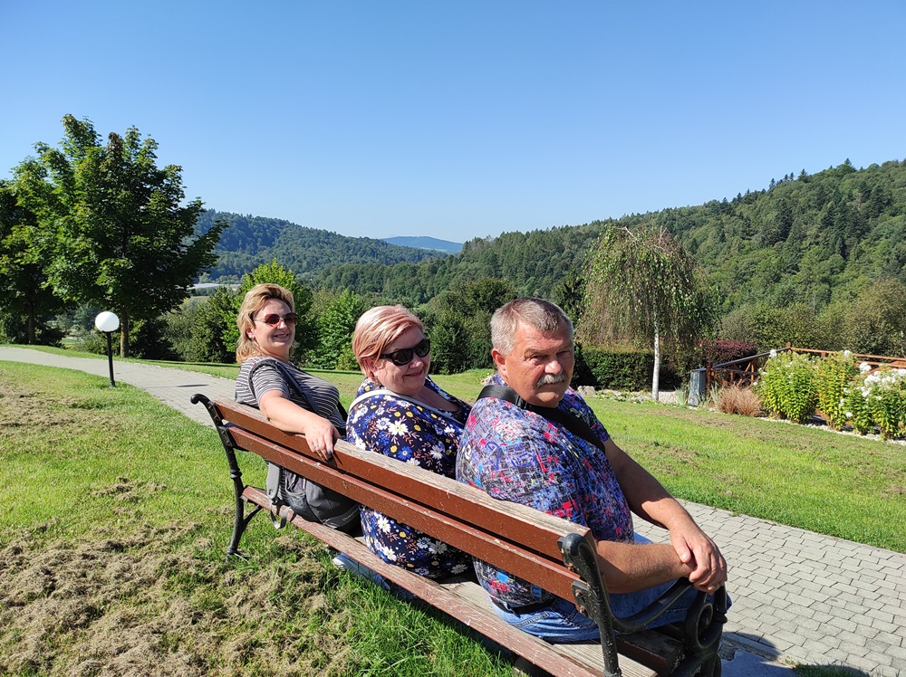 Drugiego dnia wycieczki odwiedziliśmy ogrody sensoryczne w Muszynie, gdzie mogliśmy delektować się pięknymi krajobrazami, zażywać relaksu i rozmawiać z kolegami na różne nurtujące tematy.