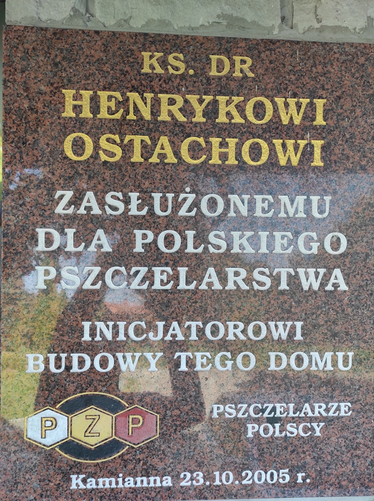 KS. DR / HENRYKOWI OSTACHOWI / ZASŁUŻONEMU / DLA POLSKIEGO / PSZCZELARSTWA / INICJATOROWI / BUDOWY TEGO DOMU / PSZCZELARZE / POLSCY / Kamianna, 23.10.2005 r.